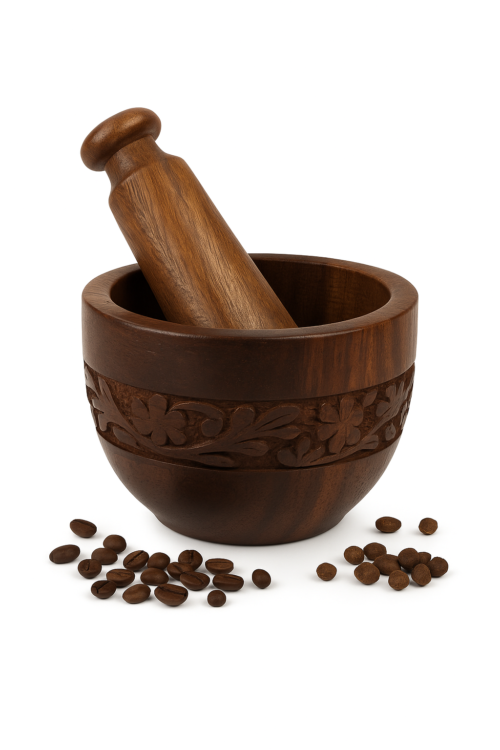 🪵 Handcrafted Wooden Mortar & Pestle Set (Okhli) with Traditional Floral Carving