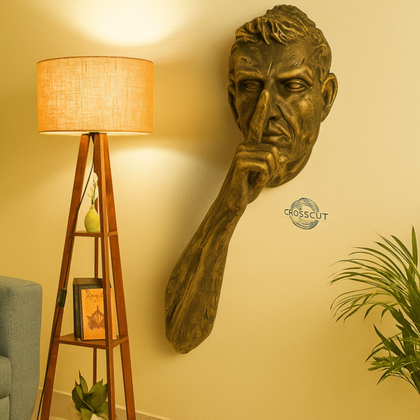 Add a touch of mystery and sophistication to your space with this Antique Silence Face Wall Art – a handcrafted sculpture featuring a man’s face with a finger over his lips in a “shhh” pose. Crafted with intricate detail and finished in a rich antique golden hue, this wall hanging embodies elegance, introspection, and modern artistic flair.