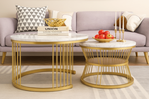 Bring home elegance and functionality with this stunning Set of 2 Marble-Look Coffee Tables featuring a premium gold-finished iron frame and a luxurious white marble-look top. These stylish round tables serve perfectly as coffee tables, snack tables, tea tables, sofa side tables, or center tables for your living room, bedroom, or modern apartment space.